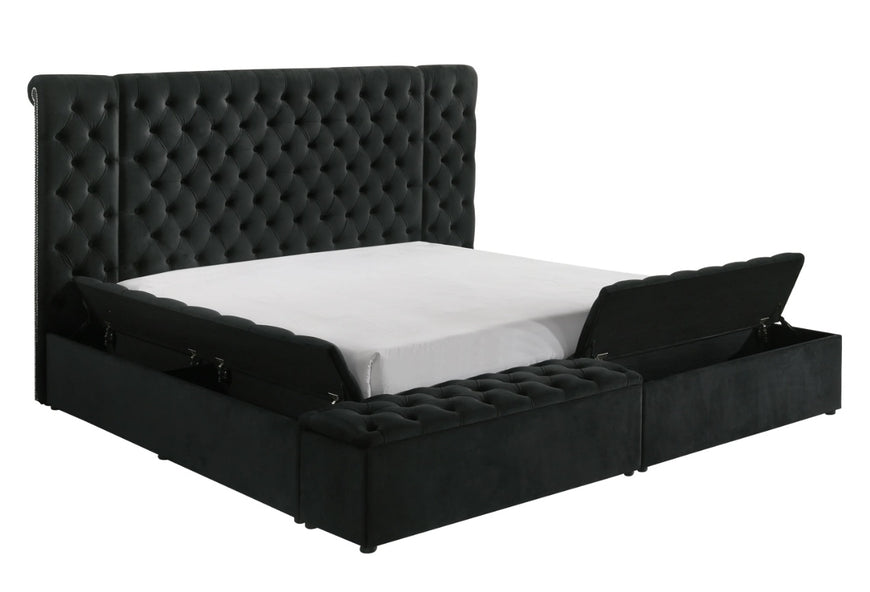 Discover the pinnacle of luxurious comfort and innovative design with our premium bed frame, a true centerpiece to any modern bedroom sanctuary. Elegantly crafted with a plush, tufted headboard, this bed combines sophisticated style with unparalleled functionality. Its majestic stature is complemented by a cleverly concealed storage space, perfect for maintaining a clutter-free environment.