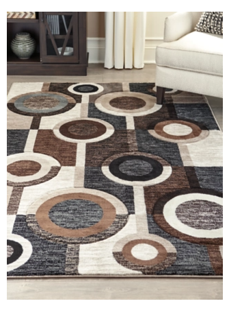Talk about bringing modern pop to a space. With its multilayered geometric design and pleasing palette of black, brown and cream tones, this area rug is decidedly bold without coming on too strong.