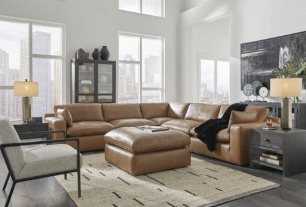 Catering to your contemporary lifestyle, this seating package is a handsome marriage of masculine and feminine sensibilities. Plush cushions soften the look of chunky, linear silhouettes. Warmly hued leather match upholstery levels up the affordable luxury. And you'll never run out of ways to stage this set-each piece is fully finished on all sides and capable of standing solo. Urban sophistication has never been more versatile.