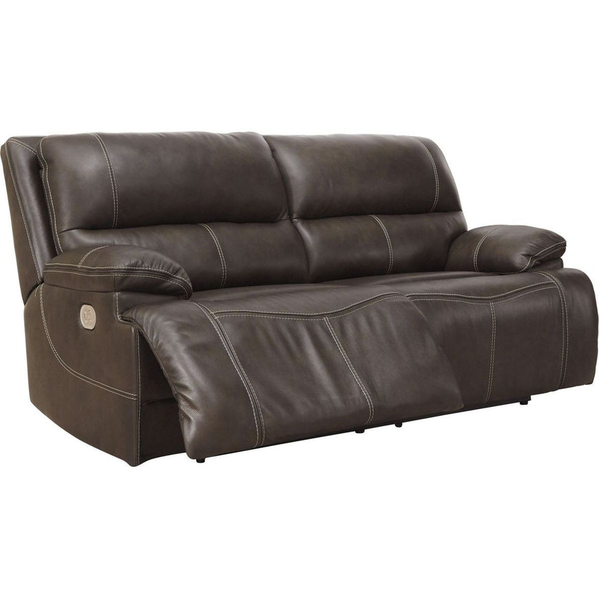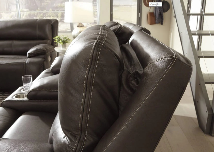 Life is so much better when you can enjoy the pleasure of real leather—at a price to put you at ease. That’s exactly what you get with this power reclining sofa. Thanks to real leather throughout the seating area, you've got a reclining sectional that feels like a million bucks but won’t break the bank. Tailored to those with an eye for contemporary design, this power reclining sectional is dressed to impress with an upscale matte finish, clean-lined divided back tufting, distinctive jumbo stitching and chic pillow top armrests. Perhaps best of all power adjustable headrests let you recline back and still have a primo view of the TV.