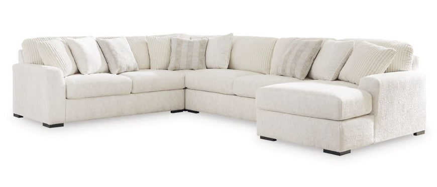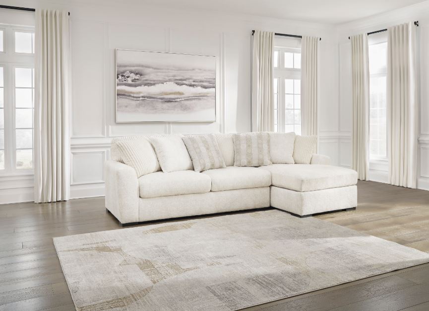 Reflect your uniquely versatile style personality with this sectional with a chaise. Its plush upholstery is complemented with retro-cool corduroy on the back cushions, creating an ultra-soft seating experience with tons of eye-catching texture. Ready to refresh your aesthetic? The sectional’s transitional silhouette and neutral hue easily adapt to your style as it changes.