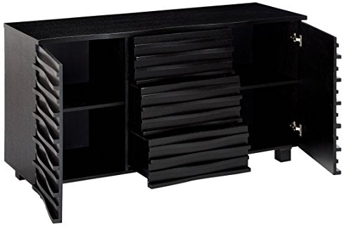 The Wave server features ample storage with cabinets and shelving for your dining accessories. This servergives your contemporary casual dining and entertainment room a bold update, with this unique wave design made from Ash veneers and finished in a rich black.  59"W x 20"D x 31"H