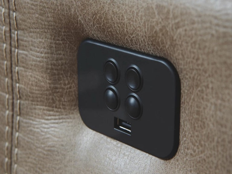 There is power in beauty with the Claudine Power Reclining Sofa. Handsome crackle effect in the upholstery gives the appearance of supple leather, but this power reclining sofa is all about the warmth of fabric. Contrast jumbo stitching adds a stylish touch, while double stuffed armrests cuff your body in comfort. Adjust your head and recline back with one easy touch.