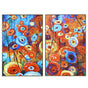 These two paintings will bring vibrancy to any space. Resembling flower meadow, their rich color palette offers many options to connect to. Hang them next to each other, or separate them on two different walls to tie the space together. These are printed on canvas and have hand painted color...