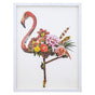 Encased under glass and white frame, this collage was created by using thick layers of patterned paper. The body is formed by a floral arrangement of pink hues, white, and green.