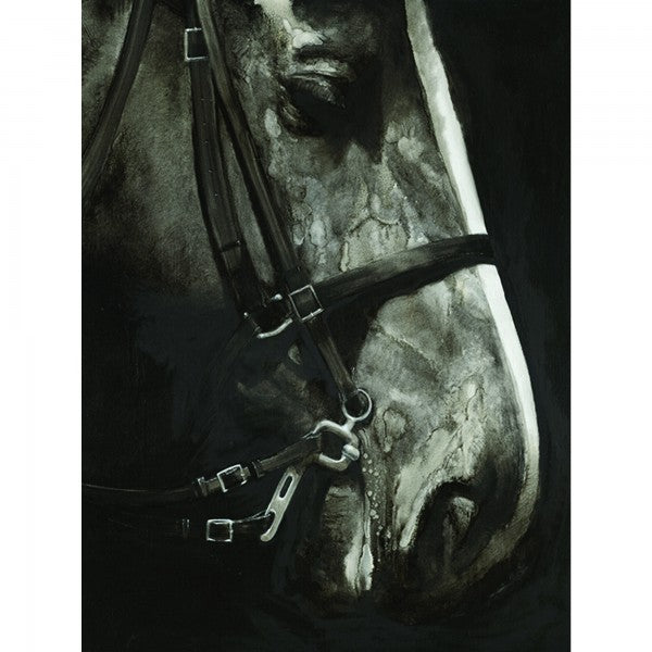 This incredible painting embodies boldness and beauty. The image of a horse from a dramatic profile perspective shows the rich character of the animal. The detailing is marvelous and the black and white coloring is unforgettable. You will adore how this piece of artwork enriches your wall.