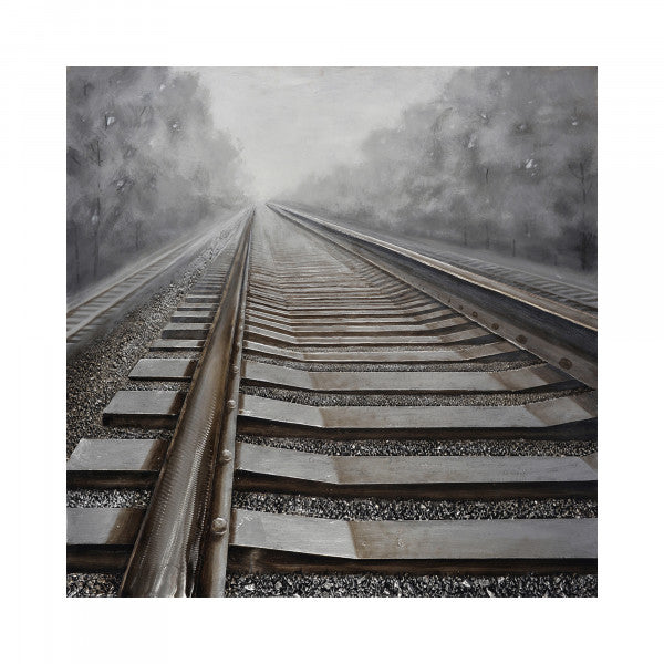 A vanishing train track in the midst of a forest is the subject of this lovely wall art on canvas. This painting sparks the imagination while welcoming a calm energy to the room. The perspective the artist created is very clear and breathtaking. Enjoy this wonderful piece in your own home or office today.