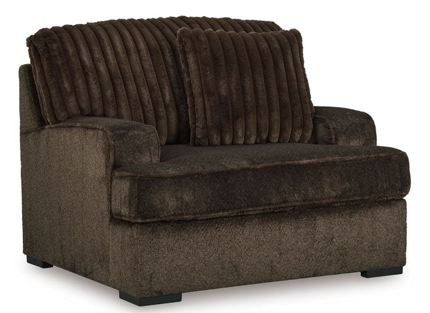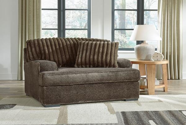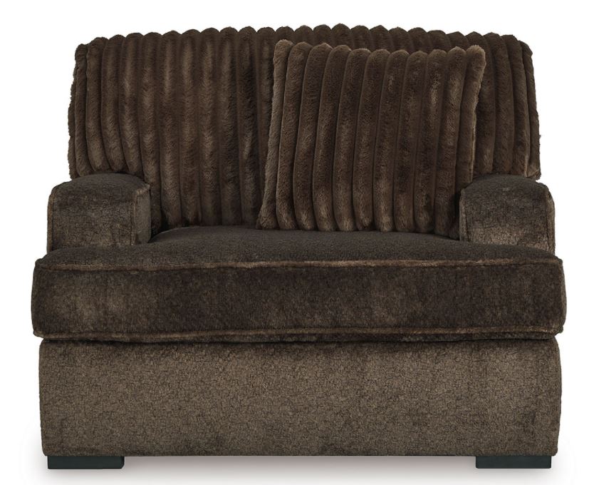If you’re looking for a blend of extraordinary comfort and contemporary style, the extra-roomy Aylesworth oversized chair stacks up beautifully. It’s a modern yet ultra-soft look pairing plush textured and on-trend corduroy cushions that feel as great as they look. The rich chocolate color is simply smart and practical. And pretty sweet.