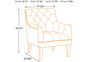 This accent chair with fashion-forward high leg silhouette gives a new meaning to traditional. Diamond button tufting garnishes the back and the plump seat. Distressed fabric with the look of quality leather adds a classic touch that you can appreciate. Mahogany brown color makes it all the more timeless. Attached...