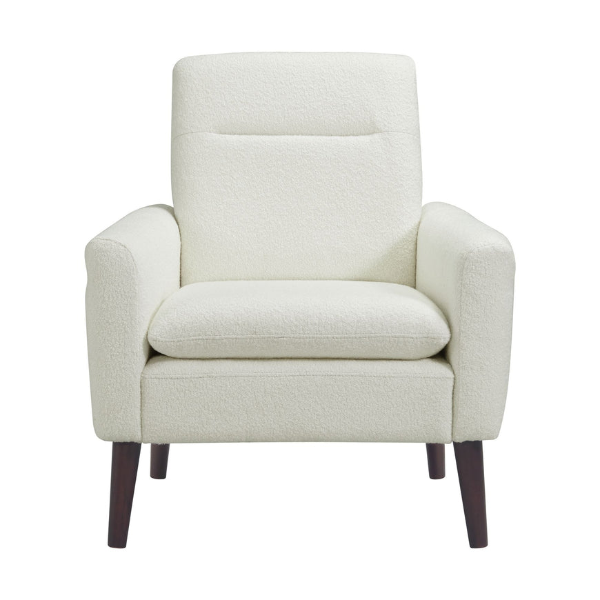The Hawk Accent Arm Chair is the perfect combination of comfort and style. With a memory foam cushion, highly-textured boucle fabric, and espresso tapered legs, this accent chair not only looks great but feels great too. The high seat back provides ample support, while the overall mid-century style adds a touch of sophistication to any room. Bring home the Hawk Accent Arm Chair and elevate your space with both comfort and style.