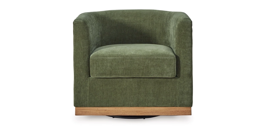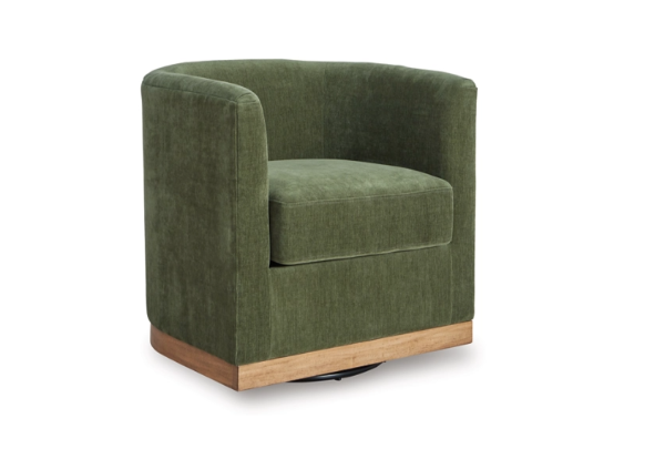 Take contemporary style for a spin with this accent chair. Handsome in a deep forest green, it adds a splash of sophistication to a reading nook or living room. The chair's handy swivel base ensures you can always find your perfect angle, while wood accent trim perfectly punctuates the look....