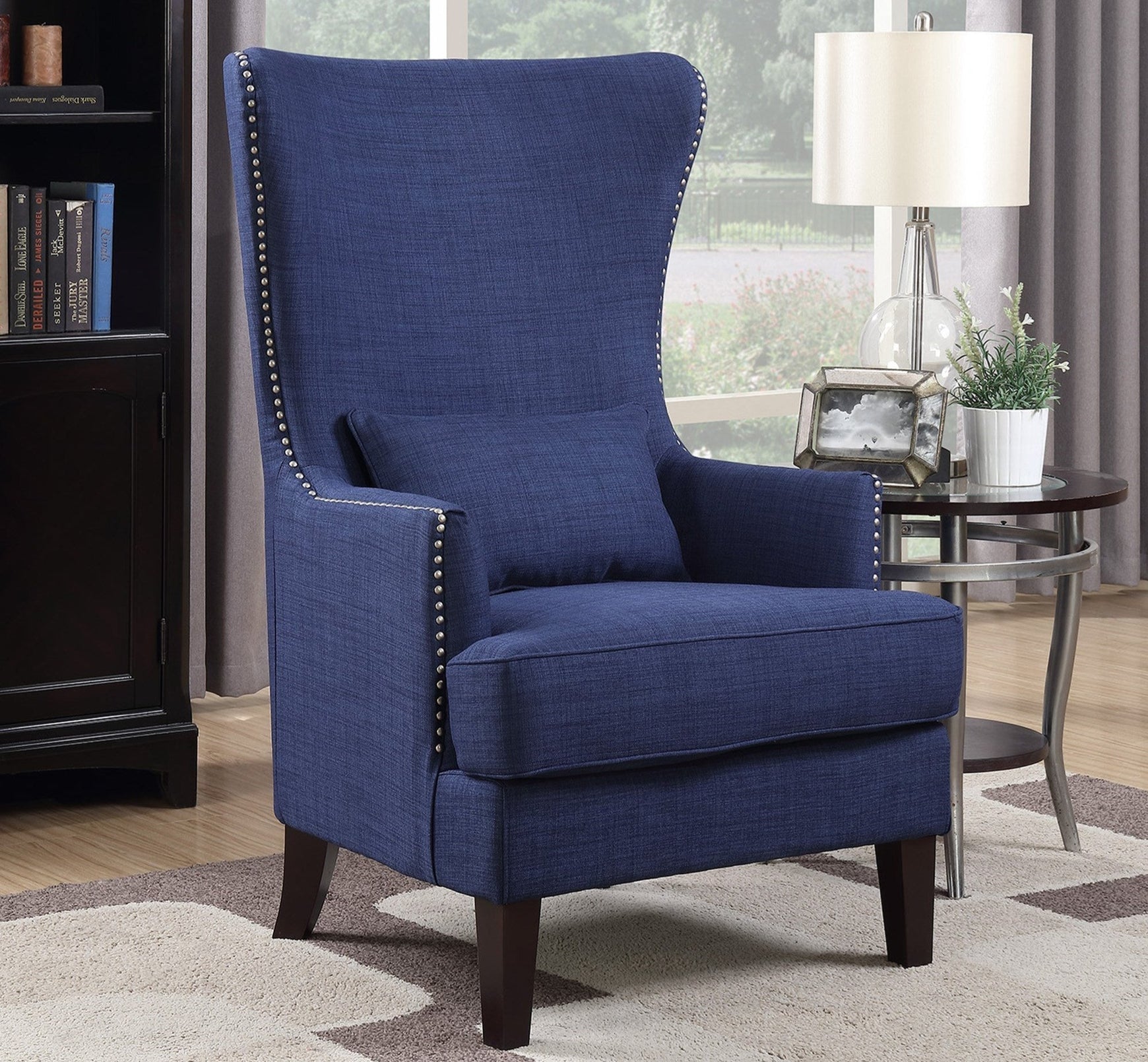 The Kori Accent Chair boasts a charming array of vibrant color options as well as a refined design. Resting on dark espresso legs, the Kori's crisp lines, elegant long back and chic studded trim make this a one-of-a-kind upholstered sensation in any home.