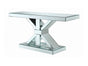 This Console Table is flawless completely covered with mirrored paneling. The thick pieces create a contemporary feel with a unique "X" shaped base. Add your favorite decorative accessories to really make them stand out on the Mirrored Console Table