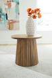 Show off your trend-right sensibilities with this contemporary accent table. Designed for the modern tastemaker, the solid wood piece wows with a fluted base. This organic beauty can be used on its own or grouped with other pieces in the collection. How’s that for form and function Made with solid...