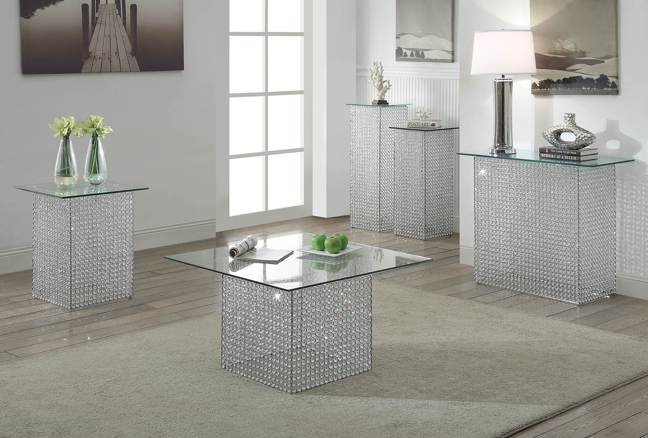 Crystal Square Base W/LED Lit14"Dia Square Glass TopOn/Off Cord Switch14" x 14" x 30"H
