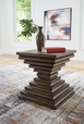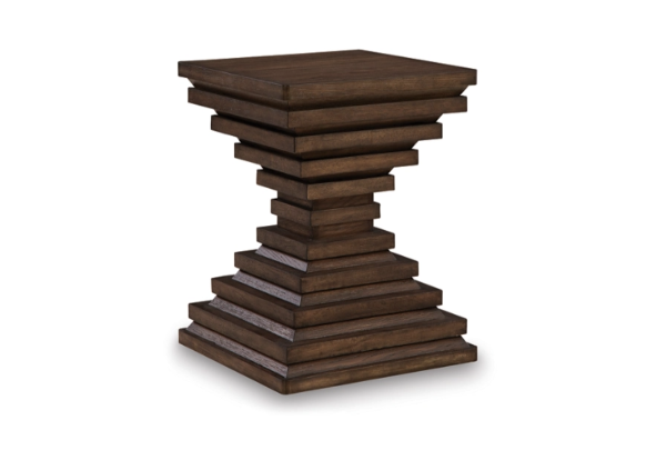 A statement-making table? Yes, please. The distinctive silhouette of this end table is sure to captivate lovers of contemporary design. Featuring head-turning architectural geometry and a rich, inviting warm brown finish, this piece is ready to take your decor to the next level.