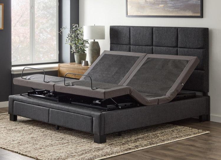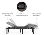 • Sleek upholstered design and durable, whisper-quiet motor; backlit, wireless remote control and two dual USB charging ports