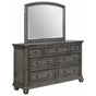 Affordable, functional, and fashionable, what's not to love about this relaxed vintage bedroom collection? It takes modern functions, such as outlets and USB charging, and mixes it with well-loved traditional characteristics like crown molding, beading, and bun feet. The soft gray finish is complemented by a weathered wood grain design that adds a welcoming texture to the collection. Bedroom Set includes: Headboard, Footboard, Rails, Dresser & Mirror.