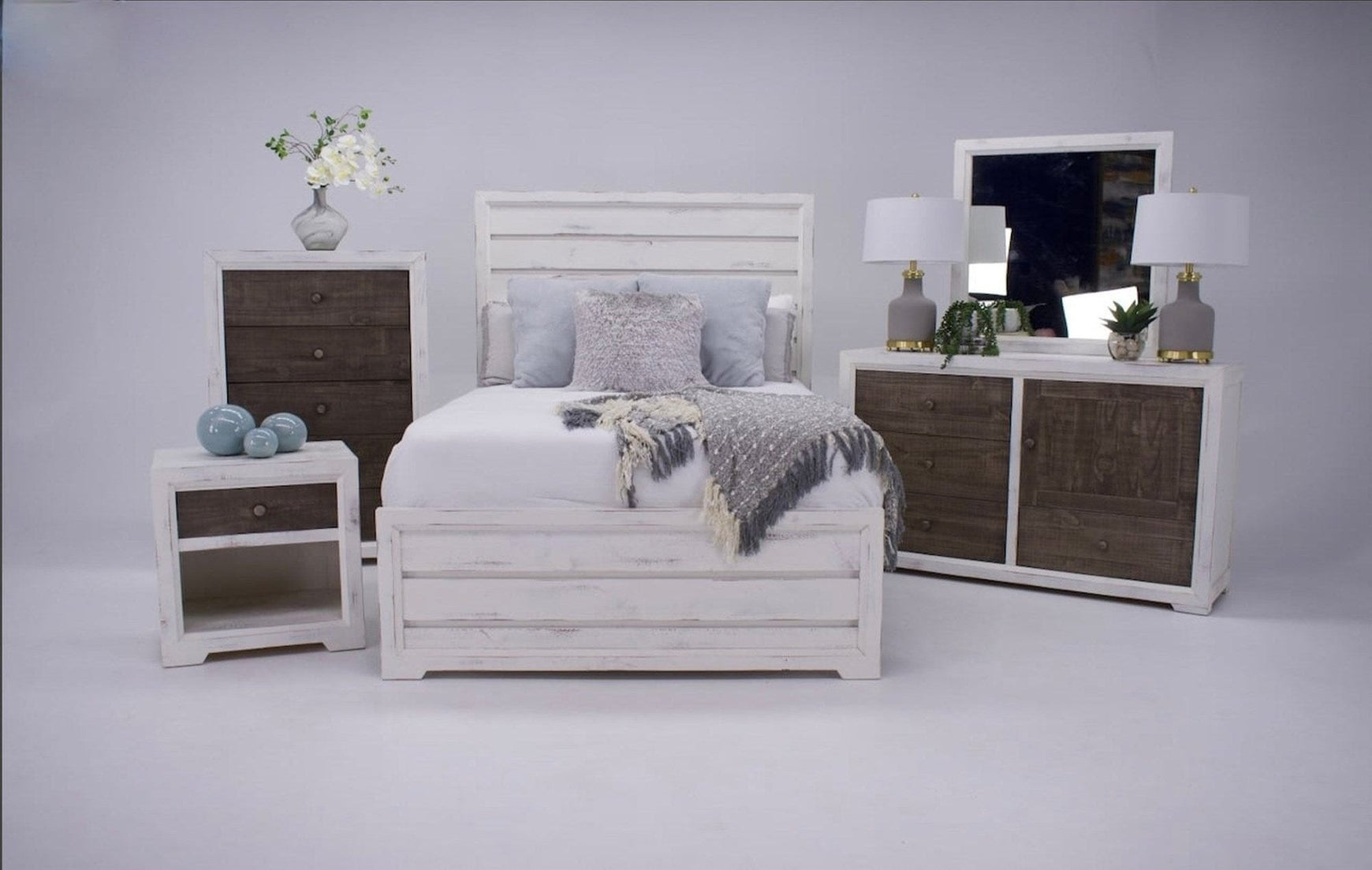 This Windjammer bedroom set features a Nero White rustic finish with a Granite contrast finish on the drawers and dresser door. The Windjammer is handmade of solid wood construction and all hand-finished to create a unique quality look made to the highest standards of craftsmanship. These details create the perfect look in...