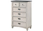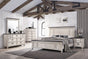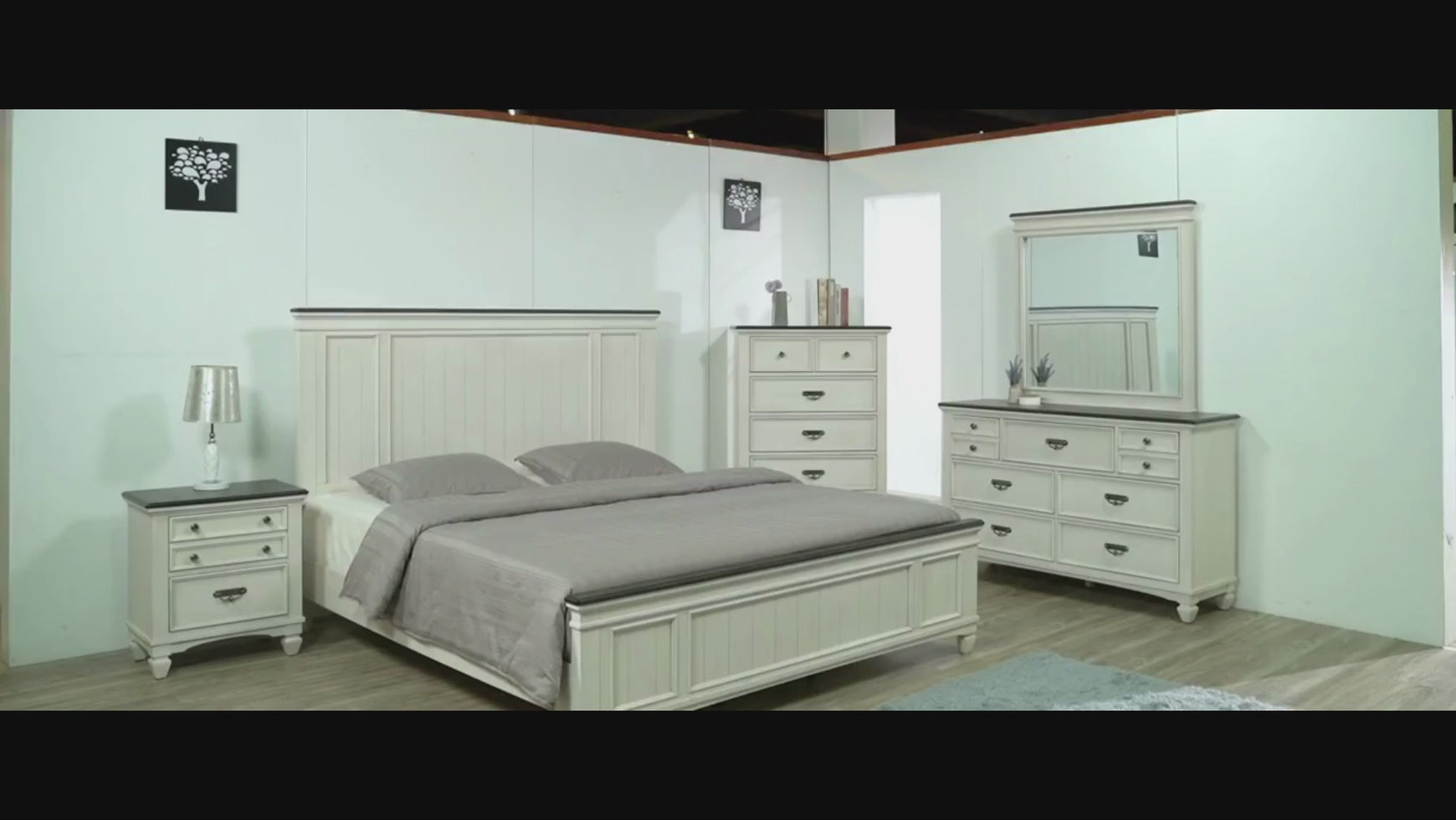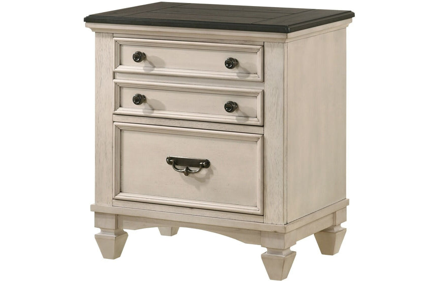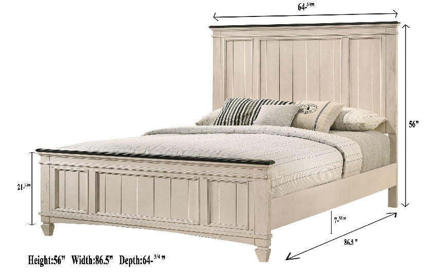 With hints of the rustic, cottage, and casual styles, the Sawyer Bedroom Set will bring a fresh and relaxing warmth to your bedroom. The antique beige finish has a rub-through effect that allows slivers of browns and grays to peek through and is highlighted with dark brown ledges and tops. The size panel style bed features beadboard, decorative molding, and frame accents. The dresser with mirror has 7 drawers including 5 large drawers for storing clothes and linens. The nightstand with 2 drawers, is the perfect bedside piece.