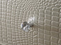 This glamorous bedroom collection features an embossed crocodile finish, decorative knob hardware, and contemporary clean lines. The centerpiece of the collection, the stunning bed, has a diamond tufted headboard surrounded by LED back lighting. Storage pieces have durable dovetail drawers with metal glides.