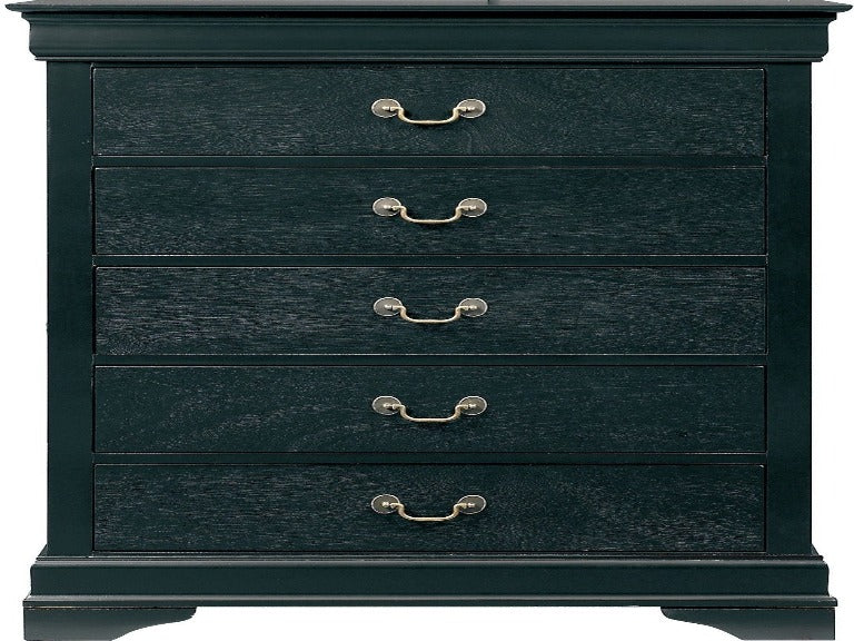 Bring home the casual and elegant Philip bedroom collection. This group is made from select hardwood available in a black finish. Elegant metal handles enhance the black finish. With great bedroom storage capabilities and a casual traditional style, the Philip collection suits the master bedroom that recalls luxury without straying from practicality.