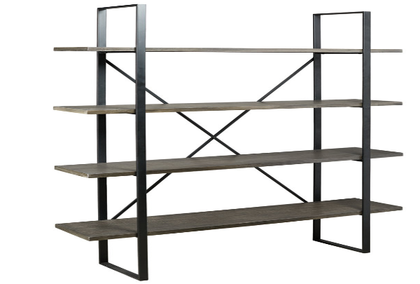 Got books? Bring them to this bookcase. Industrial mix of dark wood and black metal brings trendsetting vibes to your home. Four sturdy shelves hold your belongings with ease. Mix in some metallic decor for a home office look you can’t refuse.