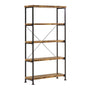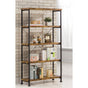 This bookshelf features four tiers and comes in an antique nutmeg finish with a black metal frame. Its four open-storage tiers provide ample space to show off books and other personal items.