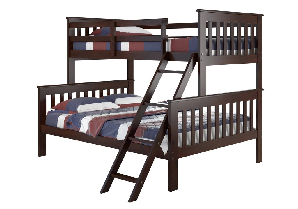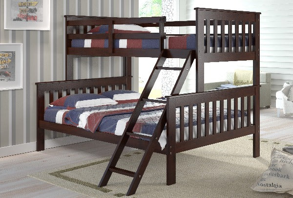 Our Twin Over Full Mission style bunkbed with Cappuccino finish will add warmth to any bedroom. This bed comes with a mattress-ready slat system, so no Bunkie board is required.