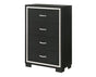 The accompanying case goods are all finished in a sharp, black hue that adds depth and modernity to any bedroom. Each piece is accented with sleek metal handles that contrast beautifully against the dark finish. The clean lines and uncluttered design of the furniture allow for versatile placement in a variety of interior styles, from contemporary to transitional.