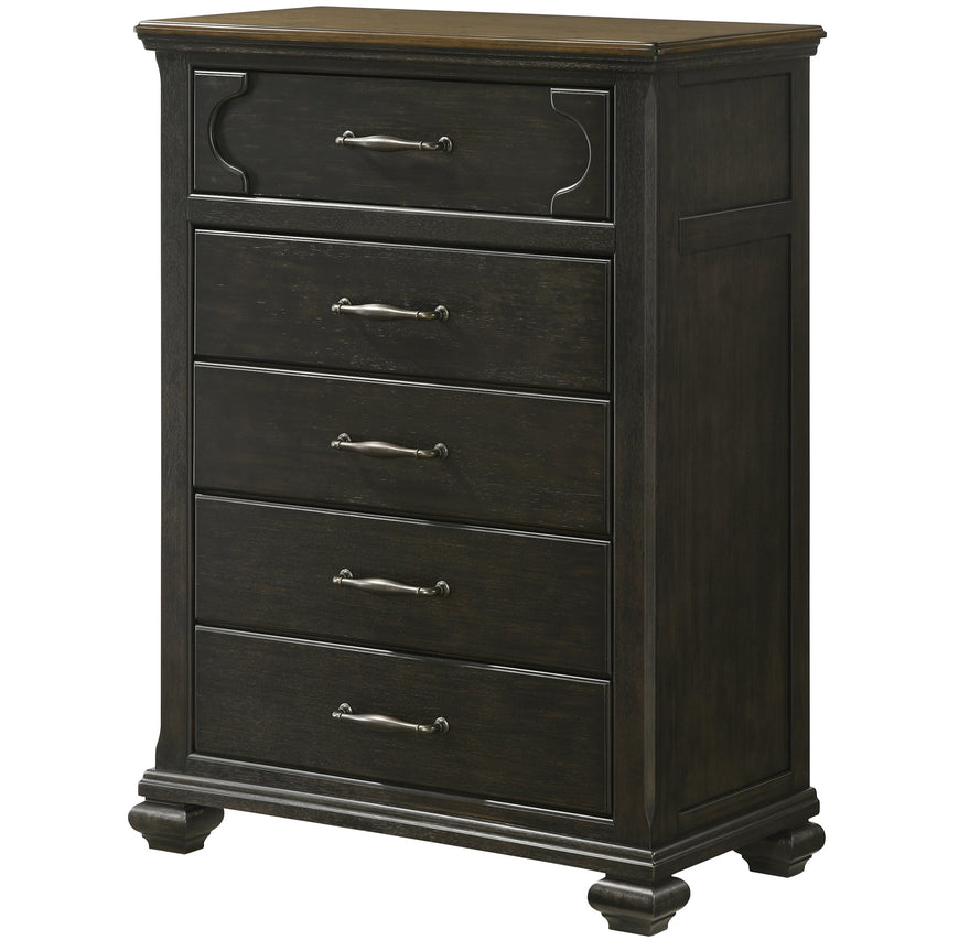 This bedroom set exudes a classic charm with a contemporary twist, highlighted by its elegant charcoal finish and stately silhouette.