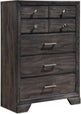 The Chest features beveled drawer fronts and felt lining. Silver-brushed hardware is a gorgeous accent against the attractive cappuccino finish. The Hayden Chest is sure to make any bedroom feel warm and refined.