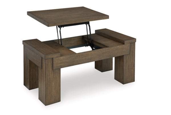 With its sleek silhouette and timeless color, this coffee table appeals to lovers of casual contemporary style. Its architectural geometry and chunky silhouette uniquely blend beauty and practicality. Combining elements of fashion and function, the lift-top design offers a table area for dinner and a movie or working from home on your laptop.