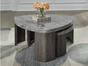 Striking contemporary form, meet can’t-miss function. This stacked coffee table pairs the look of faux gray marble with a weathered gray wood grain for a simply chic approach to monochromatic style. Make the most of your space with its cantilevered design—simply roll out the pivoting lower table when you need the extra room, and effortlessly tuck it away when you don’t. What a luxe take on everyday living.