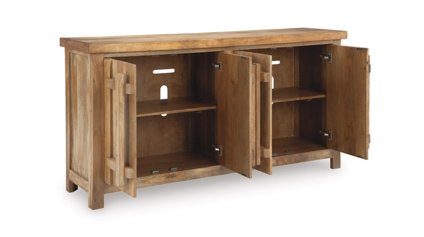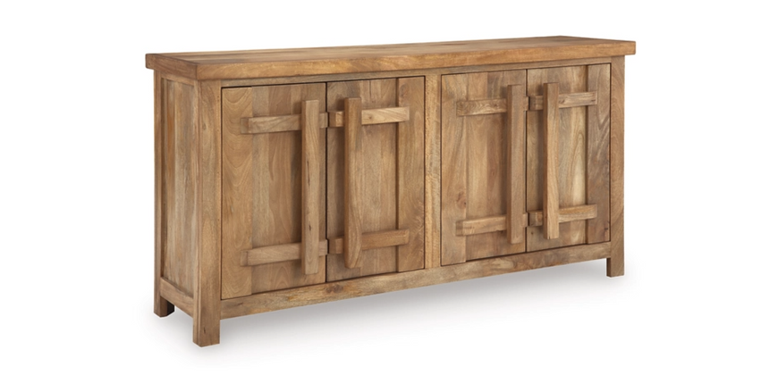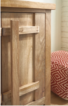 Say hello to style and bid farewell to clutter without compromising on design. This accent cabinet radiates refined modern craftsman influence. Impressive detailing and cabinets with dynamic oversized wooden pulls create organic appeal. Offering ample storage space for your essentials, don't just organize your home—artfully arrange it. Made with mango...