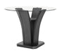 Craft a beautiful dining and entertaining space with this glass-top counter-height table. A pedestal-style base includes a spacious shelf and curvaceous inverted leg supports. A beveled glass top that is round in shape provides plenty of room for dining and entertaining. The Camelia Dining Collection combines the superb visual appearance and fine quality that you need in your dining area. Constructed of wood solids and veneers in a grey finish.