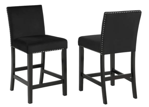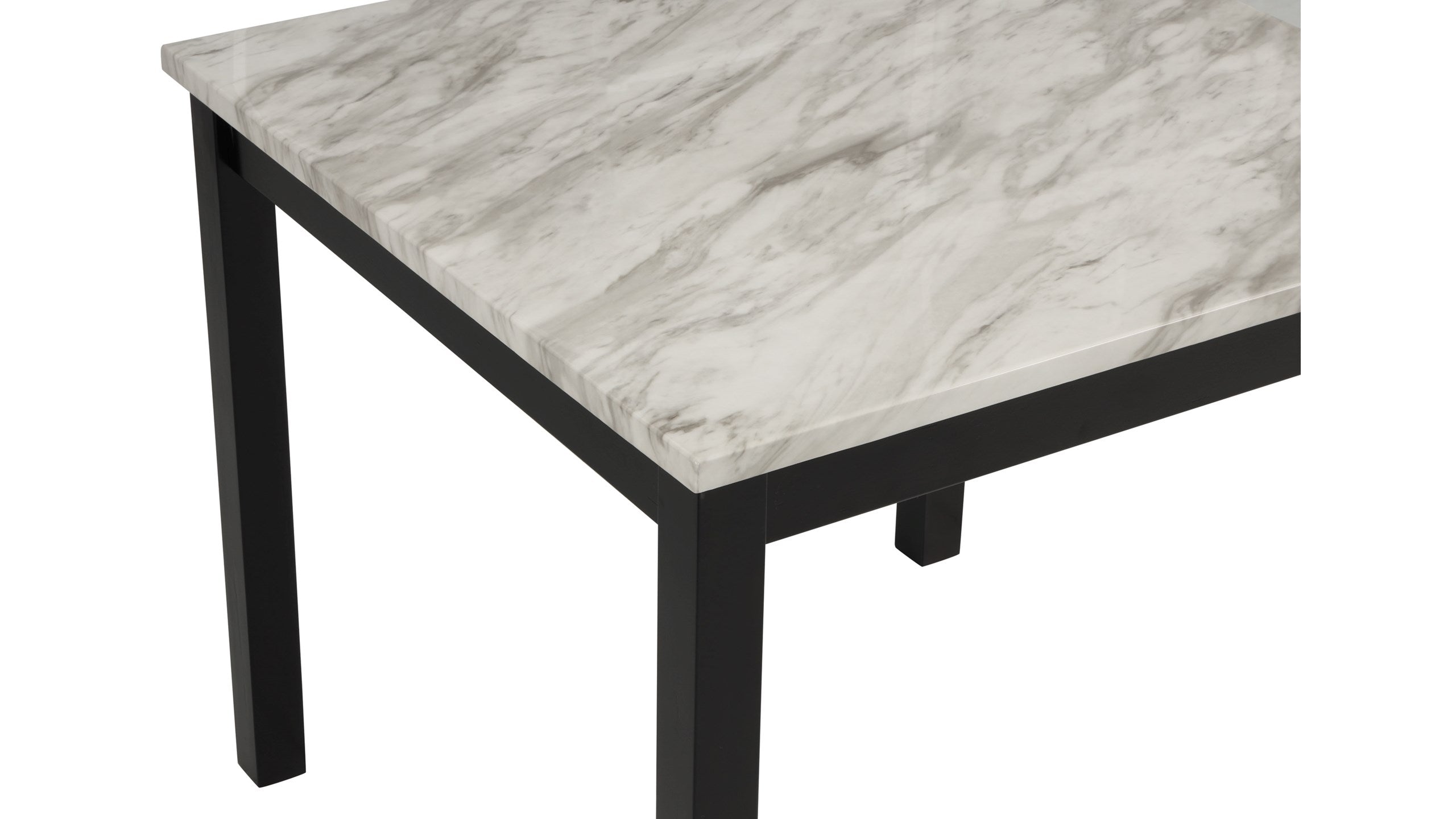 The Lennon Dinette features a counter-height dining table with a wooden frame, a faux marble tabletop, and a black finish. The counter height dining stools feature an upholstered back and seat, tapered legs with footrest, and are adorned with nailhead accents. This set includes the table and four counter-height chairs.Dimensions:Table:...