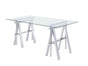 Work from a sitting or standing position with the Chrome/Clear Adjustable Writing Desk. This modern desk features an architectural design with a gleaming chrome finish covering the steel. The clear glass top provides a minimal look to the design. Clear tempered glass top, and elegant look that gives an enticing...