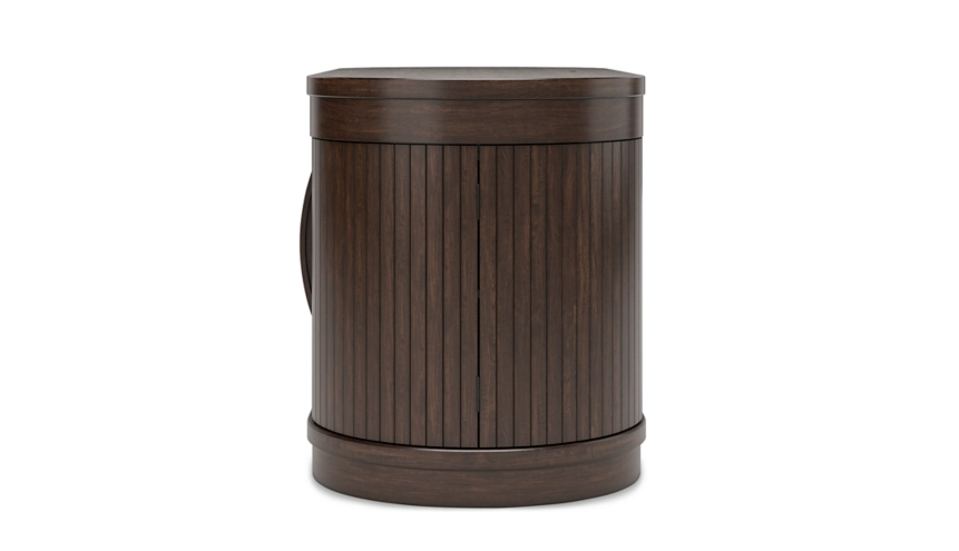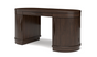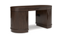 This home office desk is perfectly modern in every way. Finished on both sides in a rich wood tone, it can be floated in a room or used as a divider. Two half round door cabinets, each with an adjustable shelf, deliver a well-organized space for work-from-home professionals. It's a striking study in upscale contemporary form and function.