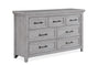 Crafted with elegance and simplicity in mind, this dresser features a weathered gray finish that exudes a sophisticated yet understated charm. The seven spacious drawers are designed with a sleek, horizontal pattern and adorned with refined metal handles, offering ample storage while maintaining a chic look. Each drawer glides smoothly on durable rails, making organization both effortless and stylish.