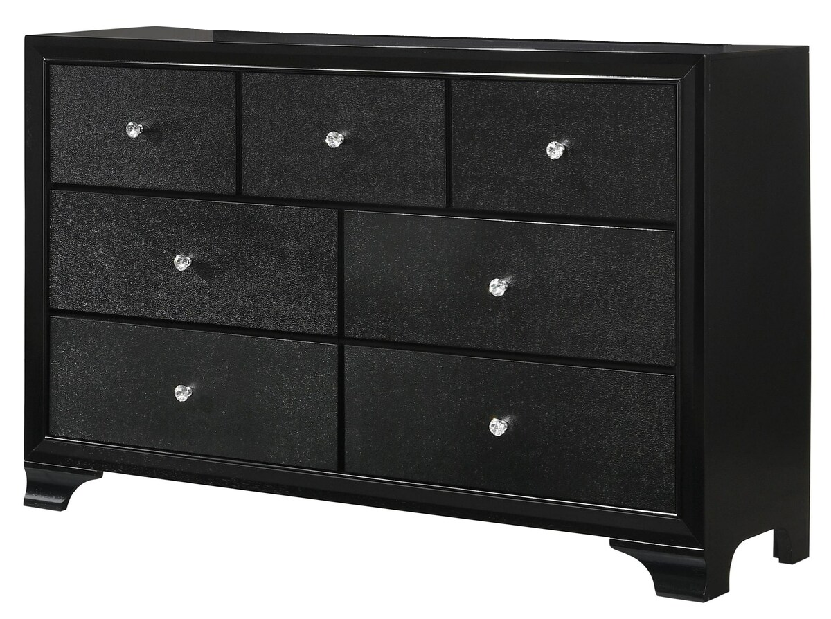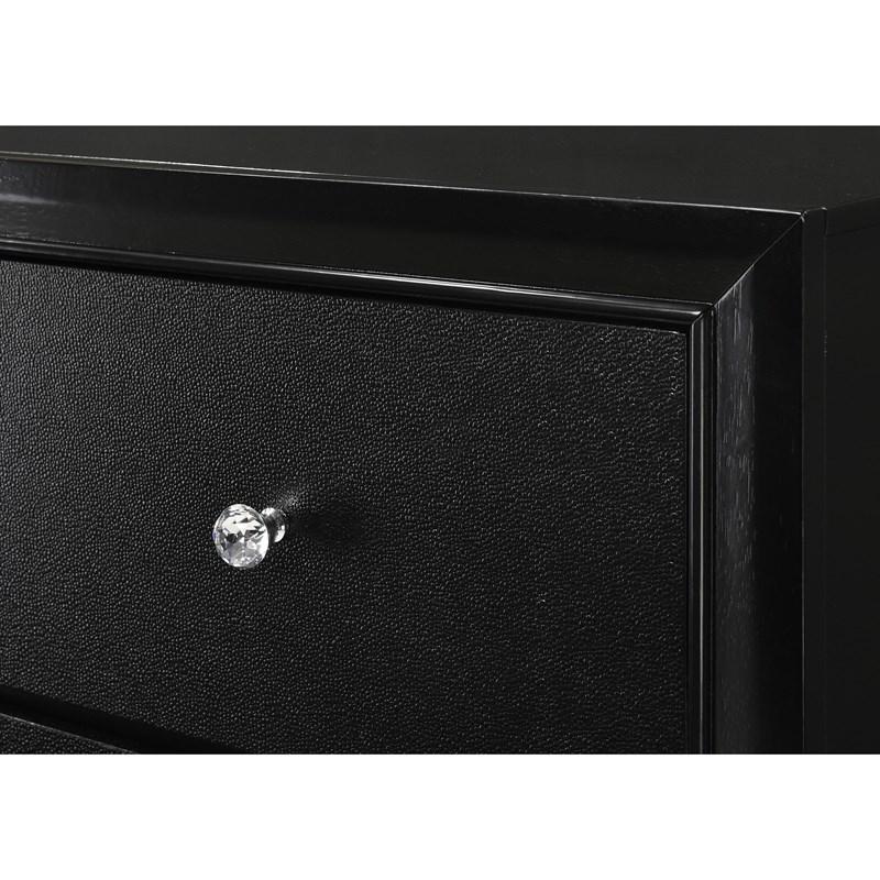 Introduce a bold touch of glam into your space with this gorgeous black finished Chest. With crystal-like drawer pulls, dark color and sleek lines, this Chest will create an impressive dark glam feel in your bedroom.