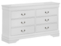Bring home the casual elegance of the Philip White Dresser. This Dresser's brass and silver bail handle hardware accents the crisp white finish. Made with select hardwood and veneers, this 6 drawer dresser offers great storage capabilities all with a casual traditional style. This versatile Philip Dresser will complete your master bedroom whether your style is traditional or more on the luxurious side!!