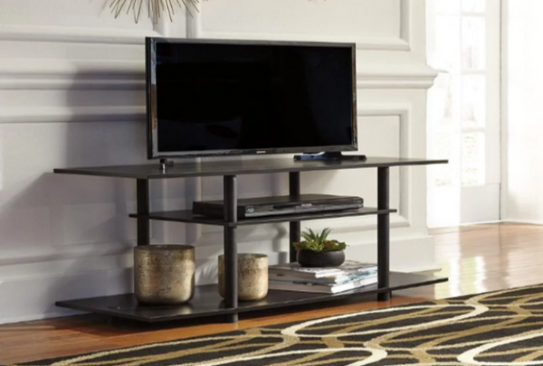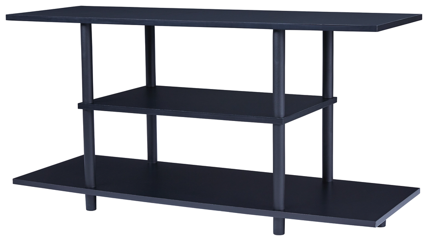 Watch TV in the modern practicality of the Cooperson 42-inch TV stand. Designed with your enjoyment in mind, this open shelf styled stand offers two shelves, perfect for holding your media equipment. You'll be impressed with its big top, ideal for accommodating TVs up to 42 inches wide. The matching lower shelf and smaller middle shelf will keep everything easily accessible. The large lower shelf with open ends can accommodate a pair of speakers or you can use the space to display large accessories.