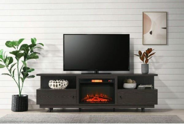Introducing the Hyler Tv Stand in Espresso, the perfect blend of functionality, style, and convenience for your home. With its stunning design and practical features, this fireplace will become the focal point of any room. Including a 23" fireplace insert and featuring open shelves and cabinet storage, the sleek silhouette and clean lines exude sophistication, making it a stunning addition to any modern or minimalist interior.