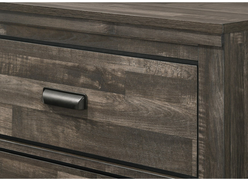 The Carter Collection is every bit rustic with a functional design. Boasting butcher block finish, this queen bed is a chic addition to your master suite or guest bedroom. This bed is beautifully designed with low profile footboard. Use of fine quality wood further adds strength and durability to this bed. An easy to maintain bed which do not require any additional care. Bedroom Set includes: Headboard, Footboard, Rails, Dresser, Mirror, & Nightstand.