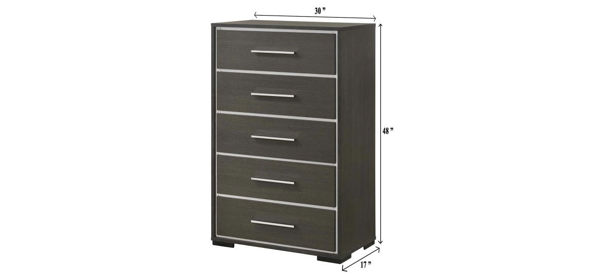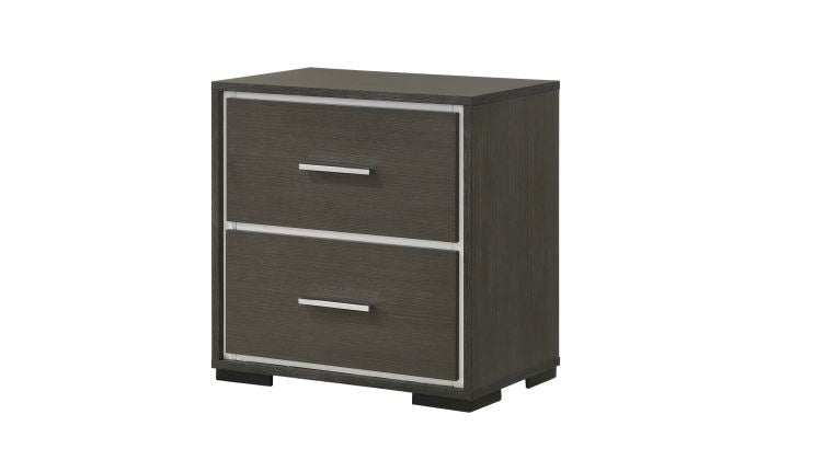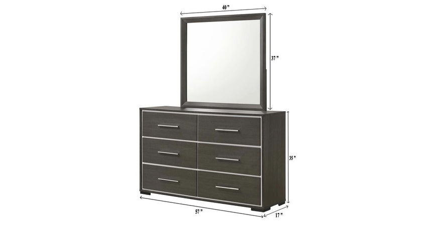 Discover the modern charm of this bedroom collection, featuring a clean-lined design with a warm, dark finish. The centerpiece is a bed with a stylish tufted headboard, providing a touch of class. This set includes a matching dresser, mirror, and nightstand, each offering ample storage space with a sleek look. Ideal for a contemporary room, this set delivers comfort and simplicity in one package. The chest is sold separately.