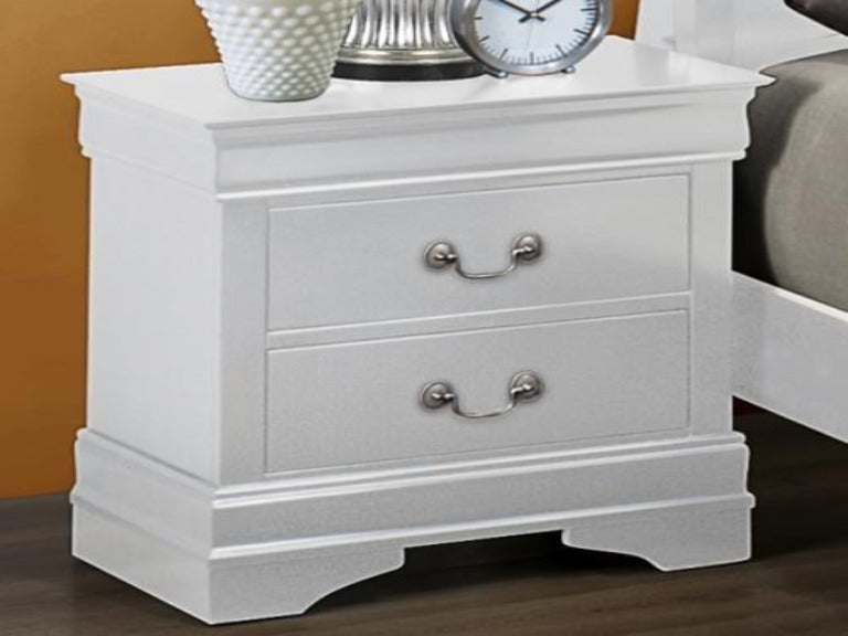 Bring home the casual and elegant Philip bedroom collection. This group is made from select hardwood and veneers available in a white finish.  Elegant brass metal handles enhance the white finish while silver bail handle hardware accents the white finish. With great bedroom storage capabilities and a casual traditional style, the Philip collection suits the master bedroom that recalls luxury without straying from practicality.