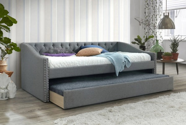 Perfect for apartments, guest rooms or anywhere you need a seat solution and place for guests to stay, this daybed is a great piece for your home. This daybed sports a transitional sofa look for when you need some relaxing space and can easily transform to 2 sleeping spots with the twin mattress and under-bed trundle. With this daybed, you'll always be ready for impromptu sleepovers or unexpected guests. Mattress & Bunkie Board sold separately.
