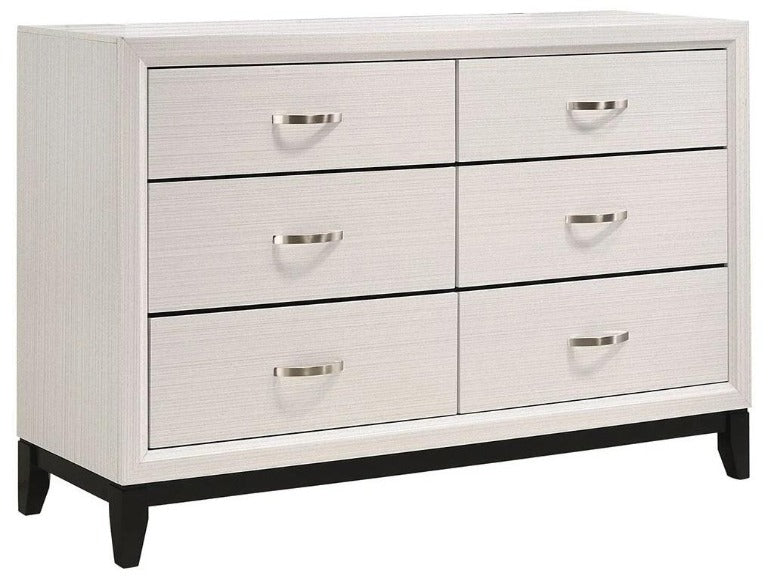 You will surely be impressed by this Anna king bedroom set. It features a panel headboard, a low profile footboard, and tapered wooden legs. Finished in chalk white, this set will easily fit into any home decor.