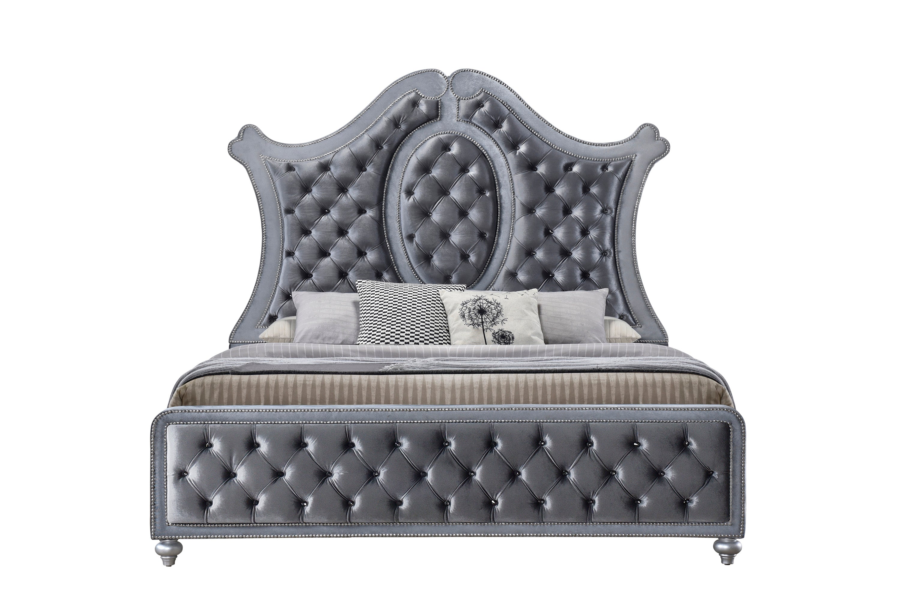 Elevate your sleeping space with this beautiful upholstered bedroom set. Designed with an elegant arched headboard that features distinct molding pattern, this bed is ideal for any traditional inspired environment, offering a modern twist on traditional living spaces.